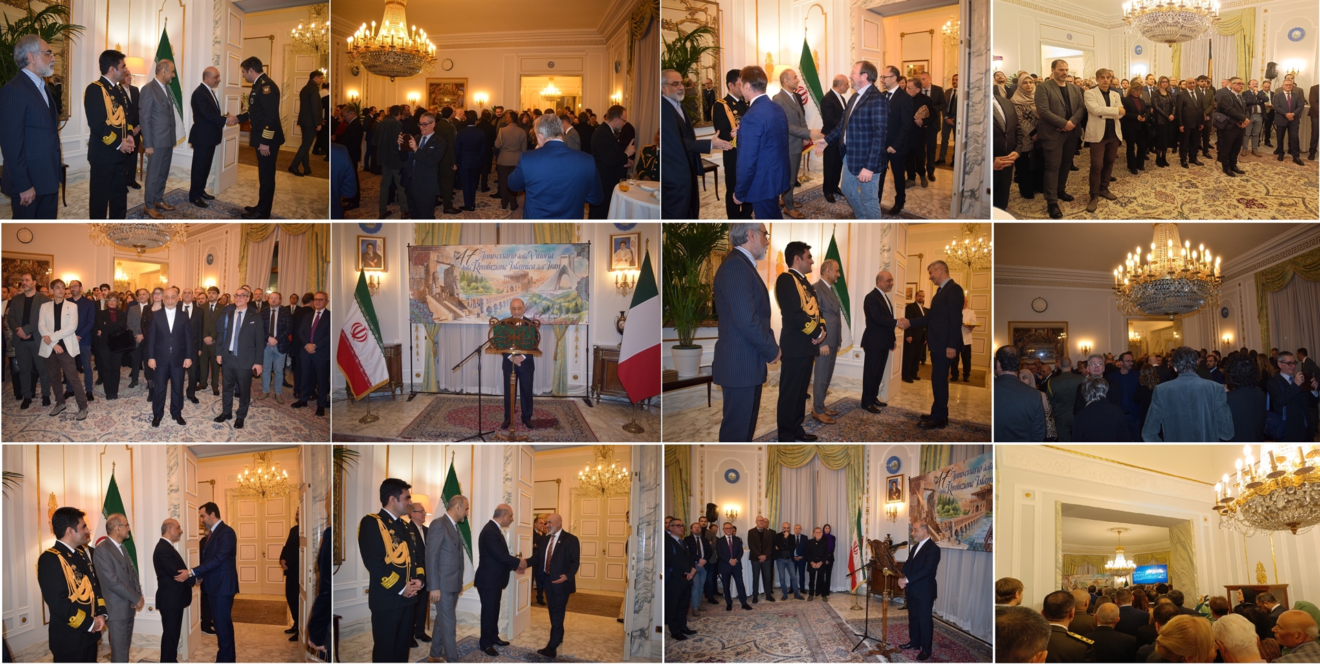 La celebrazione della Giornata Nazionale, in occasione del quarantasettesimo anniversario della vittoria della Rivoluzione Islamica dell’Iran, si è svolta questa sera a Roma, in Italia, alla presenza di diplomatici stranieri, docenti universitari, esperti, rappresentanti dei media italiani e di iraniani residenti in Italia.